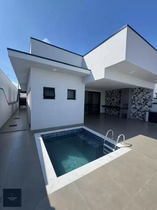 Moderna casa térrea para venda no condomínio Phytus (Rua Vitória 264 bairro Jacaré, Cabreúva SP, divisa com Itupeva SP). Lote de 250m com área construída de aproximadamente 174m, em um ambiente arejado e iluminado com três quartos sendo uma suíte, sala com pé direito de 4.5m de altura integrada com cozinha estilo americana, despensa, banheiro social, lavabo, lavanderia, garagem coberta para dois carros, espaço gourmet com vista para o por do sol, piscina,