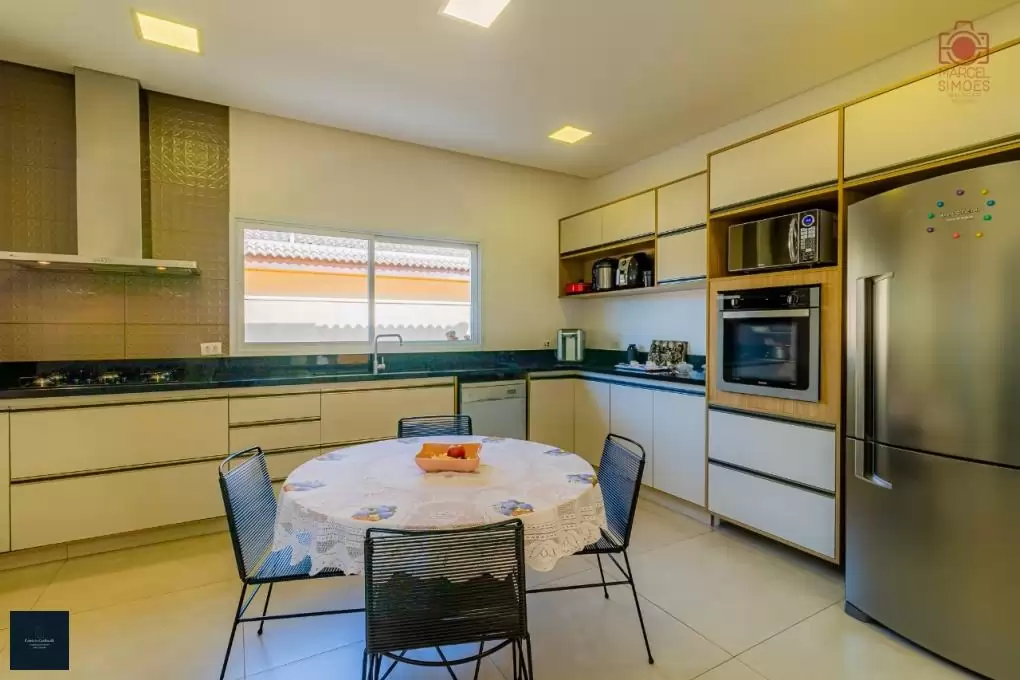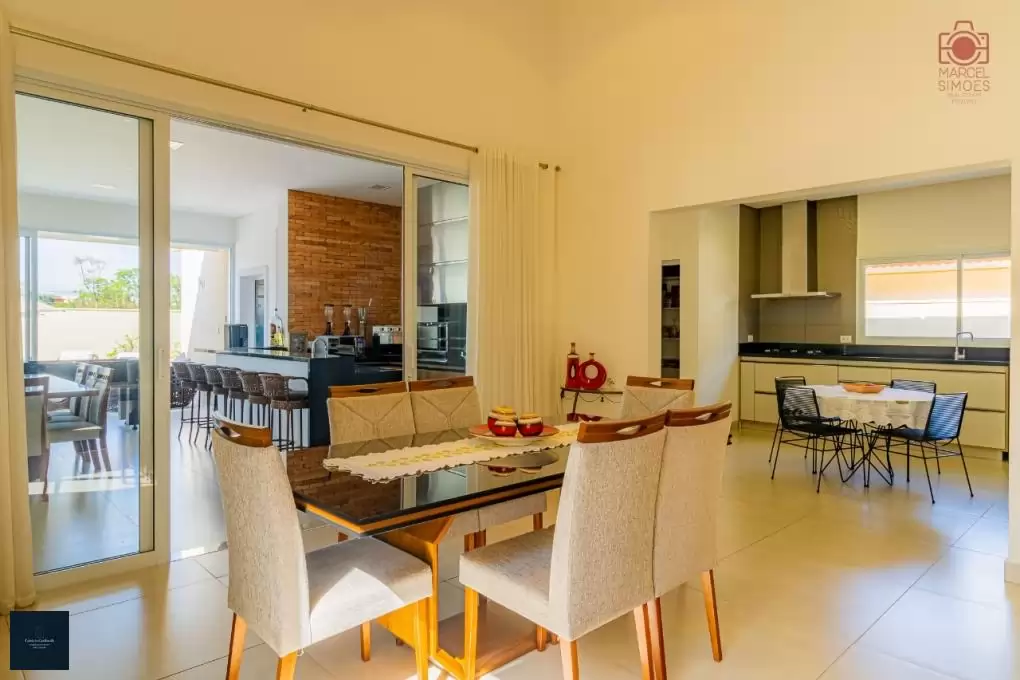 - Sala de jantar integrada à cozinha, sala de estar e área gourmet;