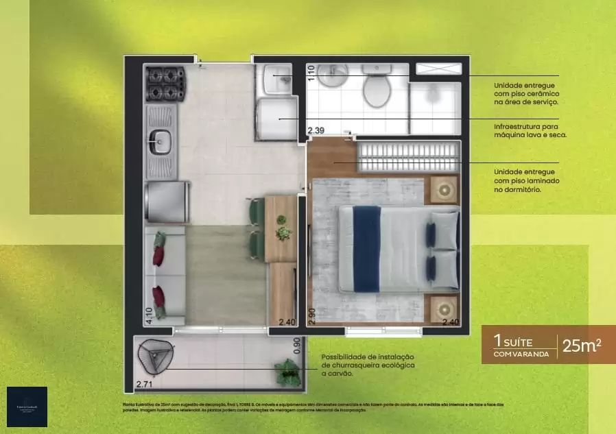 25m² ? 01 suíte, com varanda, sem vaga.