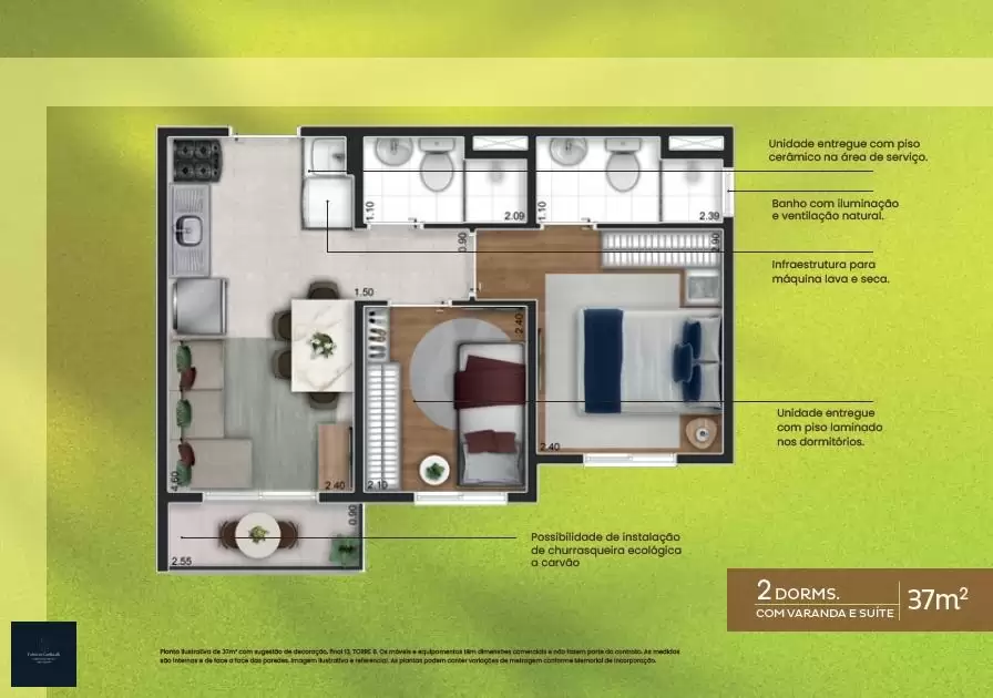 37m² ? 02 dormitórios, com varanda e suíte, sem vaga.