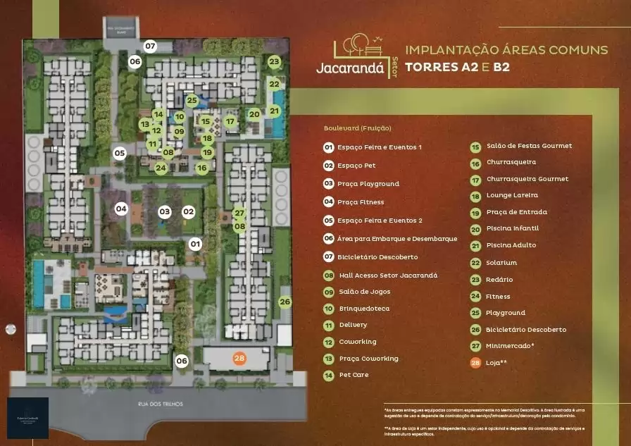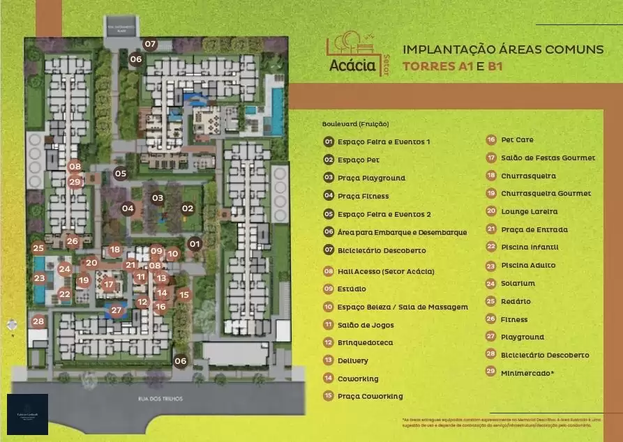 Estrutura: Área de 8.679m², quatro torres, 24 pavimentos, 1.404 unidades, com 06 elevadores por torre.
